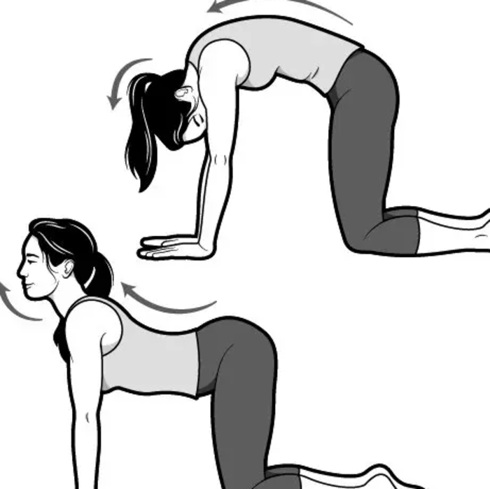 고양이 자세는 척추의 S자 굴곡 유지에 도움이 됩니다.