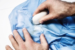 식당에서 쉽게 볼 수 있는 소금을 커피 얼룩에 뿌립니다. 약간의 소금보다는 많은 양의 소금이 도움이 될 수 있습니다. 1분간 방치한 뒤 종이 타월이나 천으로 부드럽게 문지릅니다. 이 방법은 얼룩이 퍼지는 것을 막아주기도 합니다.