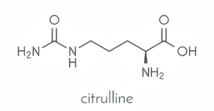 시트룰린은 박과 식물의 씨 속에 존재하는 성분입니다. 염기성 아미노산 중 하나이며 무색의 고체로 물에 잘 녹는 성질을 가지고 있는데요. 처음 분류된 시기는 1930년이며 자연계에 널리 존재하고 있습니다. 수박의 이뇨작용은 시트룰린 때문이며 오르니틴, 아르기닌과 함께 요소 생성에 기여합니다.