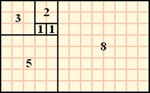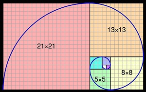이 개념은 간단히 이야기해서 첫째와 둘째 항이 1이고 이 뒤의 숫자들은 바로 앞 수의 합이 되는 수열입니다. 배열을 직접 써보면 1,1,2,3,5,8,13,21,34,55… 이렇게 되는 것이죠. 최초 두 수의 합이 2 그다음 2의 앞인 1과 2 자신의 합이 3 그 앞의 2와 3 자신의 합이 5 이런 배열이겠죠.