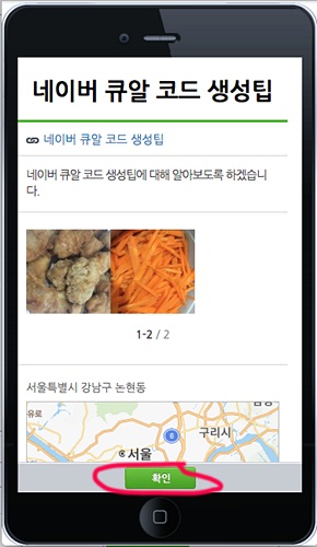이상으로 네이버 큐알코드 만들기가 완료되었습니다. 미리 보기를 클릭하여 휴대폰에서 구동되는 화면을 확인합니다.